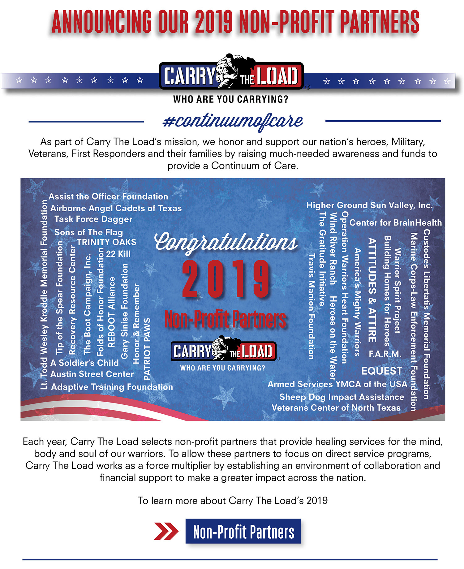 Custodes Libertatis Memorial Foundation will partner with Carry The Load in 2019!